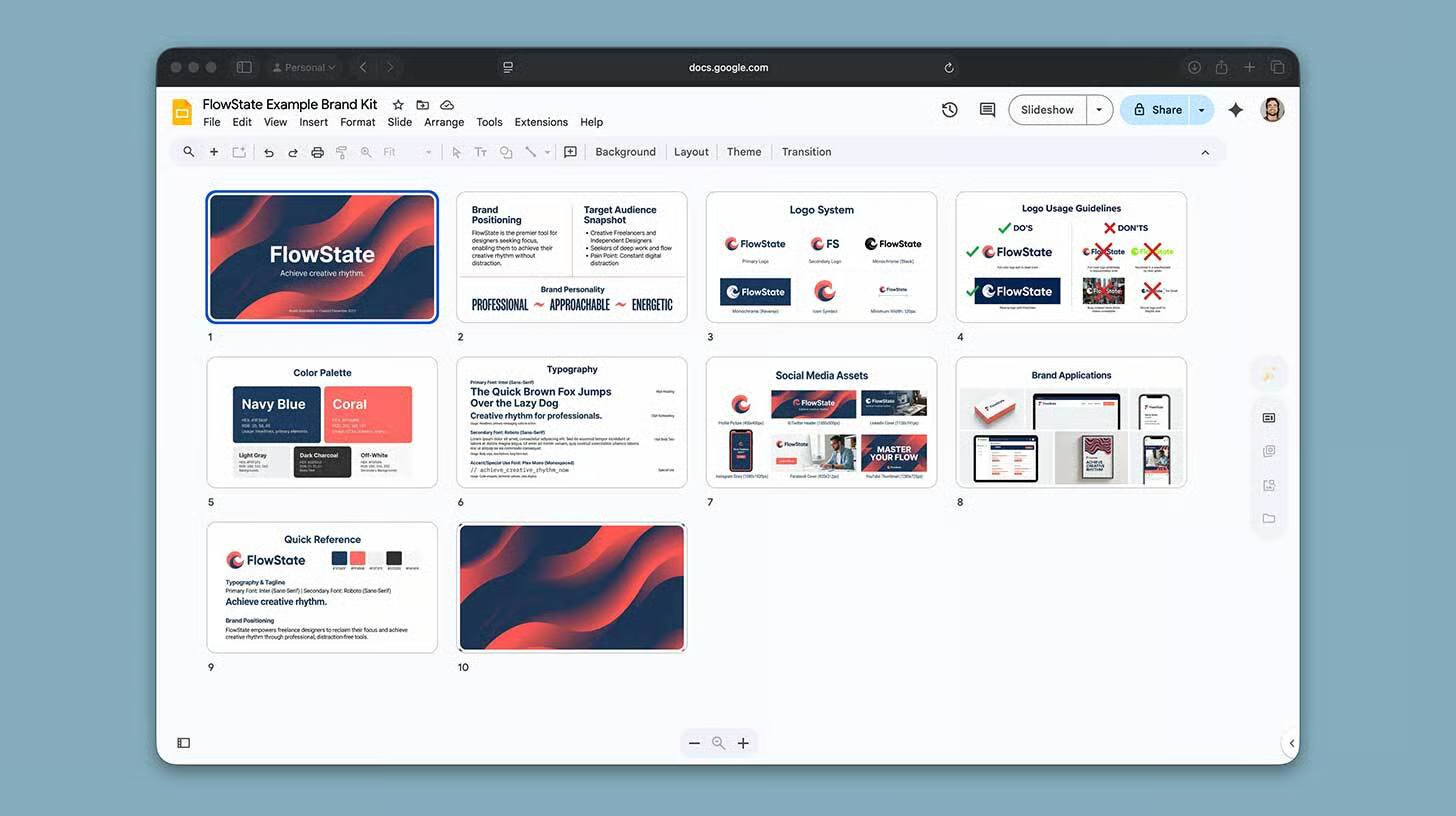4️⃣ Build the Brand Kit Deck One Slide at a Time