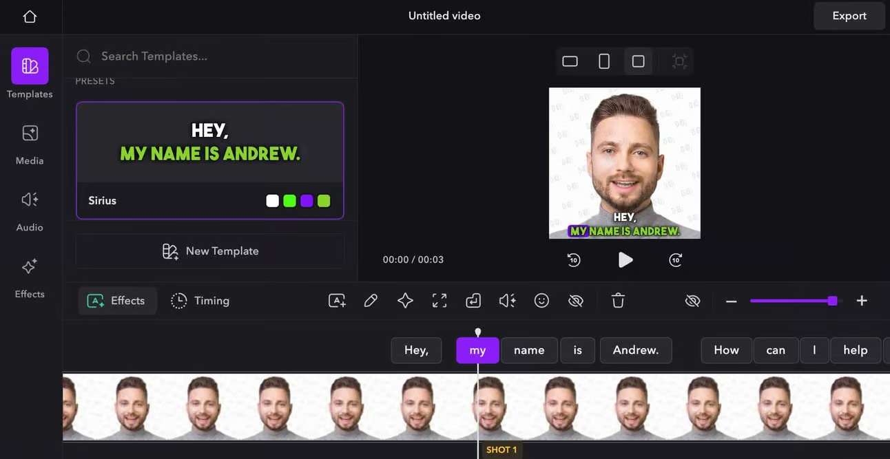 Once satisfied with the captions, click the export button at the top right. Note that exporting requires a Pro account.