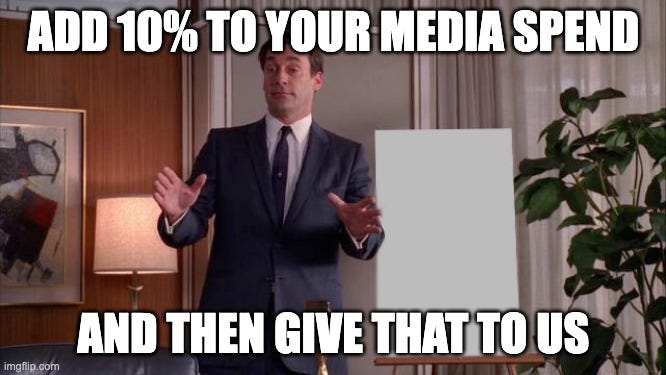 The traditional â% of media spendâ agency model is falling out of favor. For brands stuck in the middleâneither tiny nor hugeâthis model creates a profit squeeze. Agencies chasing ad spend may not align with your bottom line, making it a risky bet.