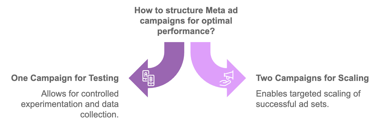 One Testing Campaign: Dedicated to experimenting with new angles and creatives. Each ad set focuses on one concept, ensuring clean data and actionable insights.