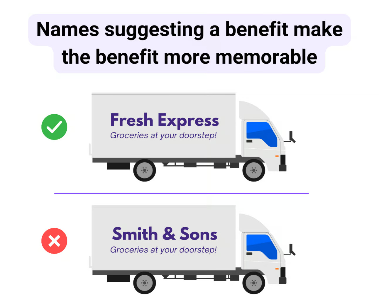 When a brand name is tied to a core benefit—like "Speedy Courier" emphasizing speed—it immediately communicates the product’s key value. People remember this connection far better than if the brand name were neutral or abstract. If your product has a single, standout benefit, make it a part of your brand name. This association can lead to customers recalling the feature more vividly, which can boost the perceived value of your product.