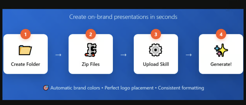 Creating professional, brand-consistent presentations can often be time-consuming, from adjusting fonts to placing logos just right. With Claude Skills, you can now automate the process entirely. By teaching Claude your company’s brand guidelines once, it can instantly produce on-brand presentations, saving you hours of repetitive design work.