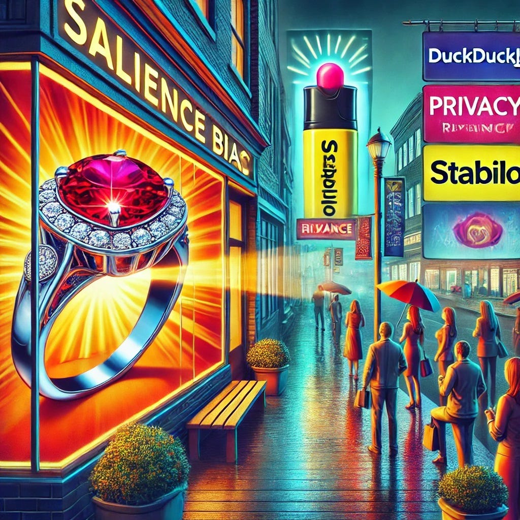 Consider a jewelry store window. You pass by daily, hardly noticing the displays. Then one day, a huge, bright ruby ring catches your eye, making you stop and admire it. This is salience bias in action. It also explains why: