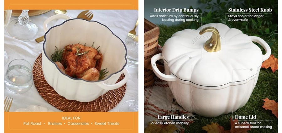 Phrases like âcozy warmth of fallâ and âautumn-inspired dishesâ invited customers to imagine Thanksgiving gatherings and comfort food dinners. This approach makes the product more than a kitchen toolâit becomes the centerpiece of seasonal experiences.