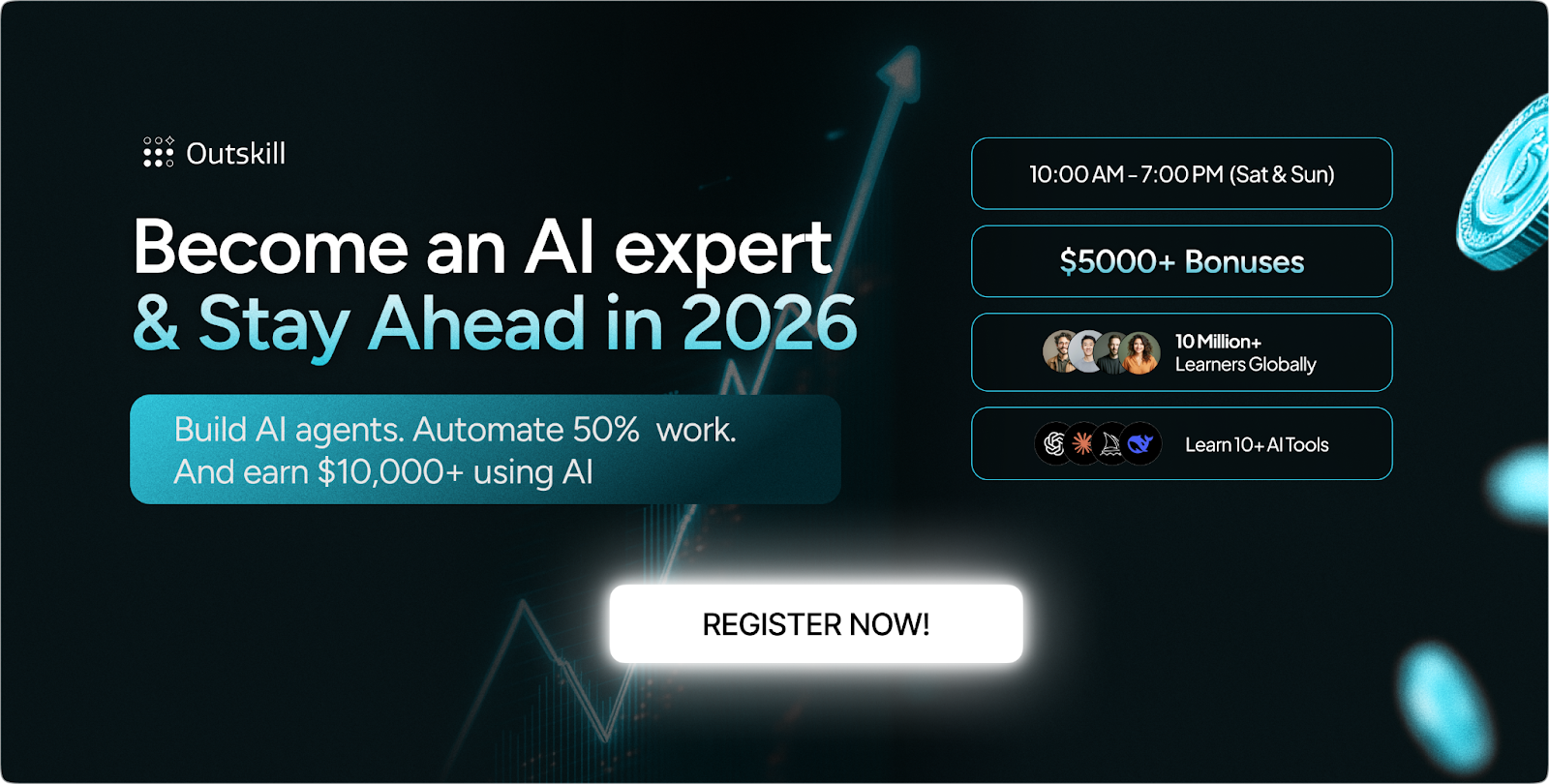 Outskill can teach you AI in just 2 days, the skill that can make you smarter, faster, more revenue-driven, and irreplaceable in 2026.