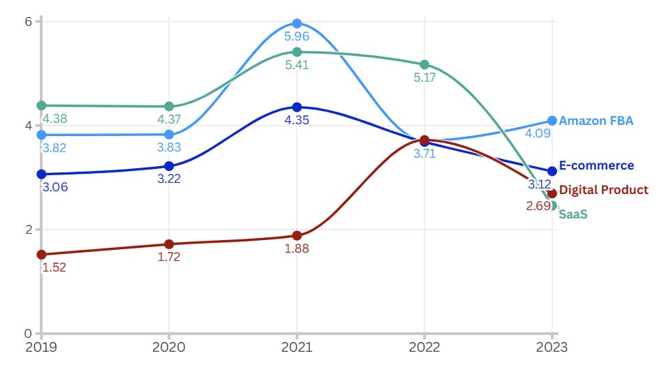 - Subscription Boxes: High profit multiples (up to 7x) thanks to predictable revenue streams.