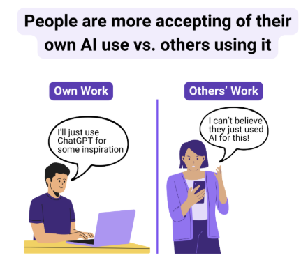 Humans tend to rationalize their behaviors while being more critical of others. This applies to AI-generated content—people assume their AI usage is for inspiration and support, while others are simply outsourcing the work.