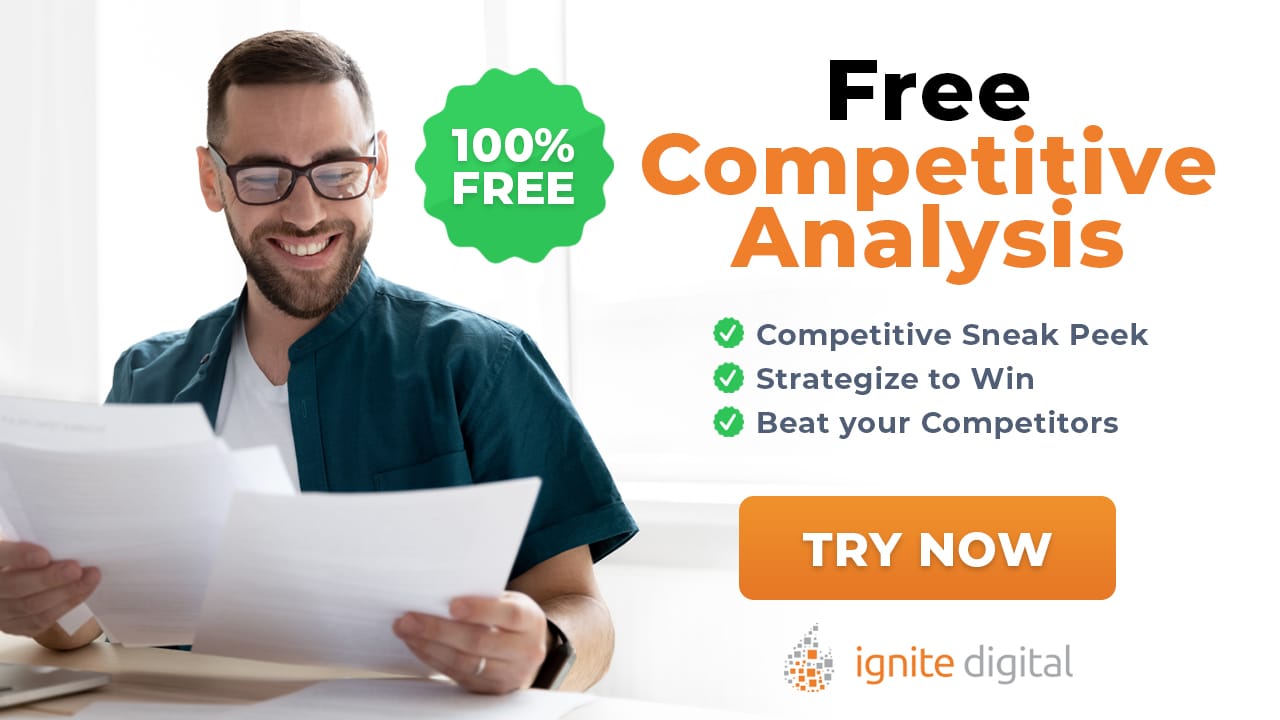 Wanna give them a test drive? Request a FREE competitive analysis and Ignite Digital will respond on the same day with a sneak peek of your competitor's strategy & how you can beat them.