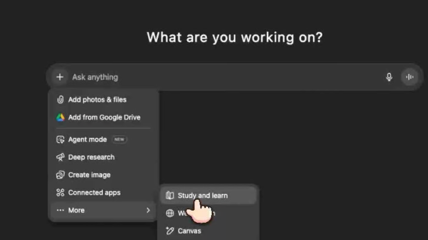 Start by activating Study & Learn mode in your AI settings. This mode is designed to guide you step by step instead of simply giving you the final answer.