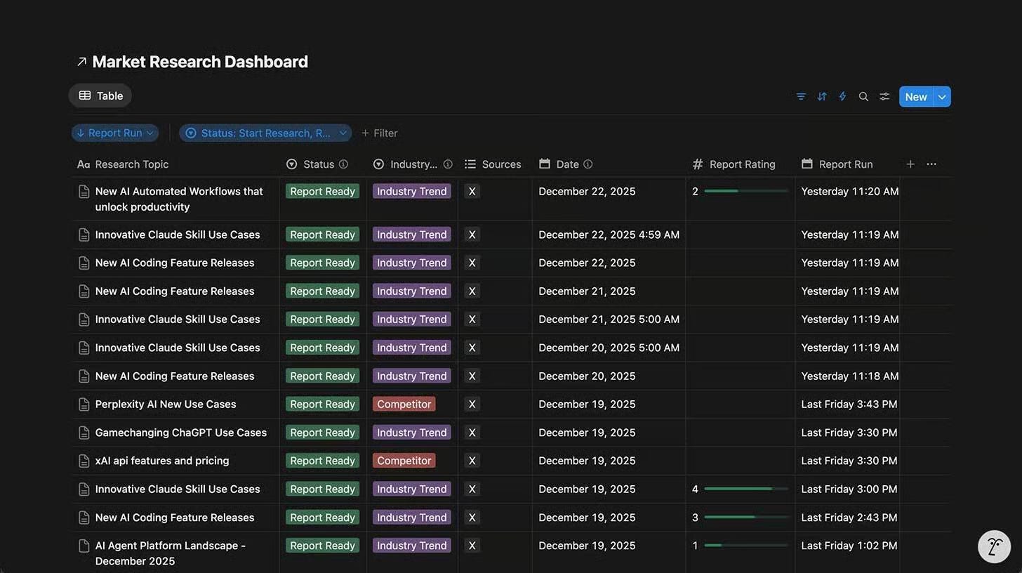 Start by duplicating a Notion database template that will store your research. Create fields for topic, date, industry or competitor, sources, and status. This database becomes your command center for daily insights.
