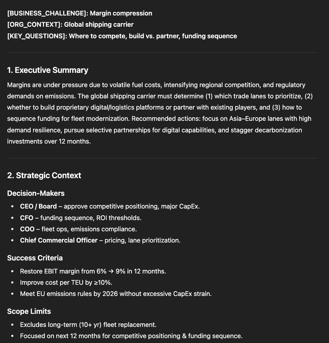 You are a pro enterprise strategy partner tasked with producing an executive-ready strategic report.