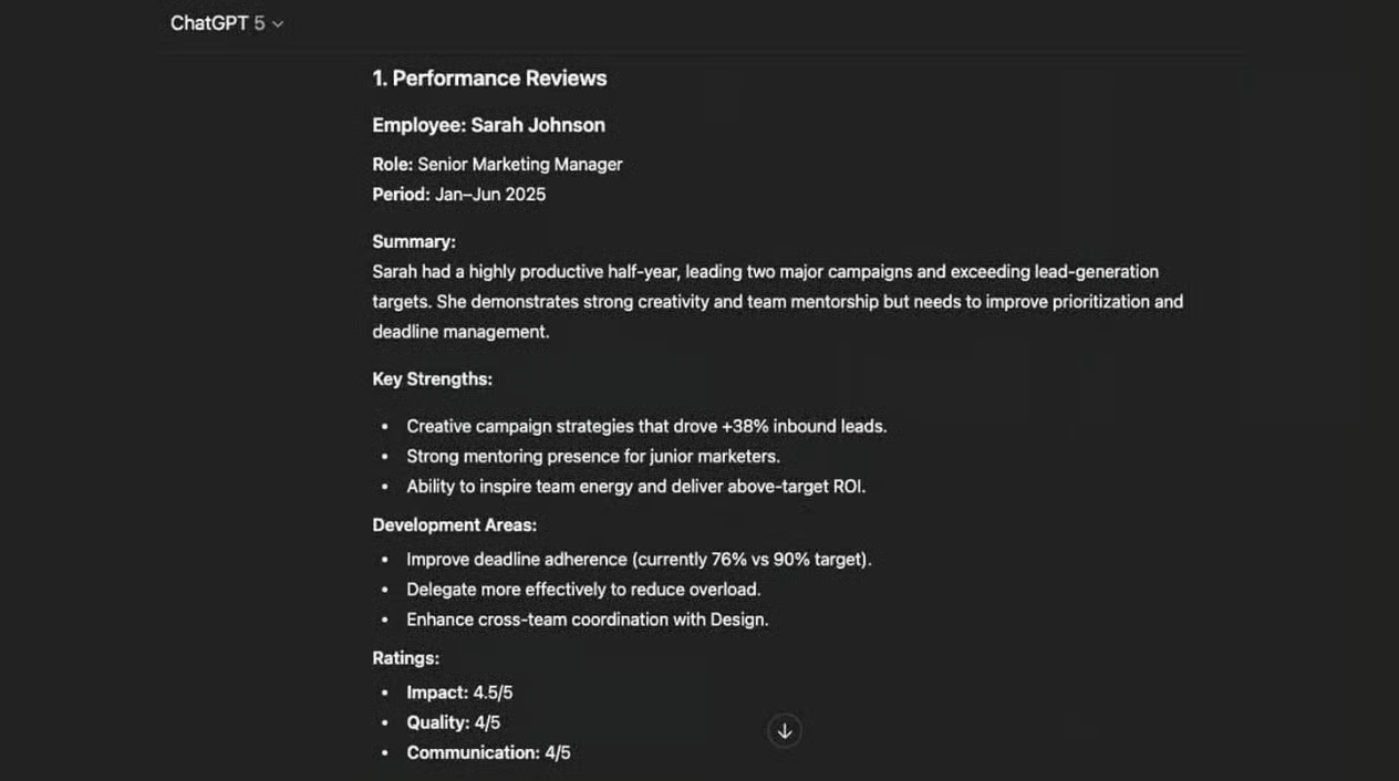 Performance reviews often take hours of manual work from organizing notes to structuring improvement plans. But with ChatGPT’s new Agent Mode and Google Drive integration, you can now automate the entire process. By linking your knowledge base and setting up automated workflows, AI can transform messy notes into professional performance reviews and structured 30/60/90-day improvement plans with minimal effort.