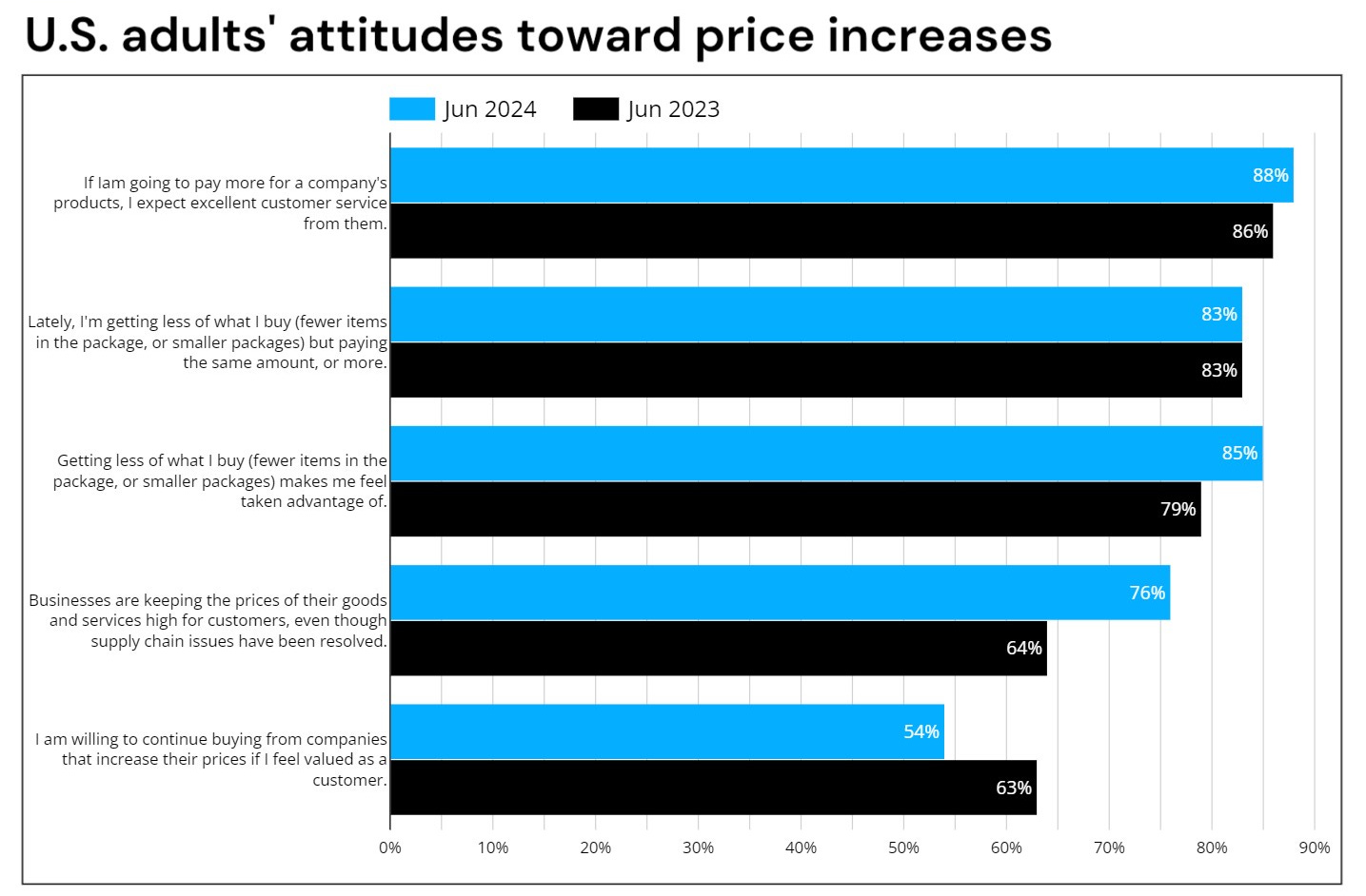 Shoppers are more price-conscious than ever, with 85% feeling they receive less value for their money. Brands must be transparent and offer outstanding customer service to build trust, especially when price increases are unavoidable.