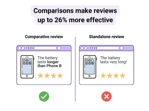 Ask reviewers to compare your product to others. Comparative reviews, even negative ones, make feedback more credible and increase sales by up to 26%. You can seed this by prompting: “How does our product compare to what you used before?”
