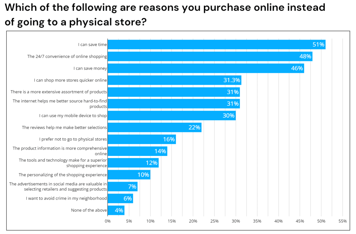 Beyond convenience, shoppers love the ability to find hard-to-get products, save money, and shop at any hour. Optimizing for mobile and making customer reviews easily accessible can further boost online appeal.