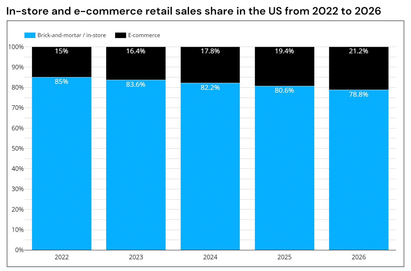 While brick-and-mortar stores maintain a stronghold, e-commerce is creeping up. By 2026, it’s predicted that online sales will make up over 20% of total U.S. retail sales. The global market is expected to grow from $5.8T in 2022 to $9.4T by 2026, showing steady, if not explosive, growth.