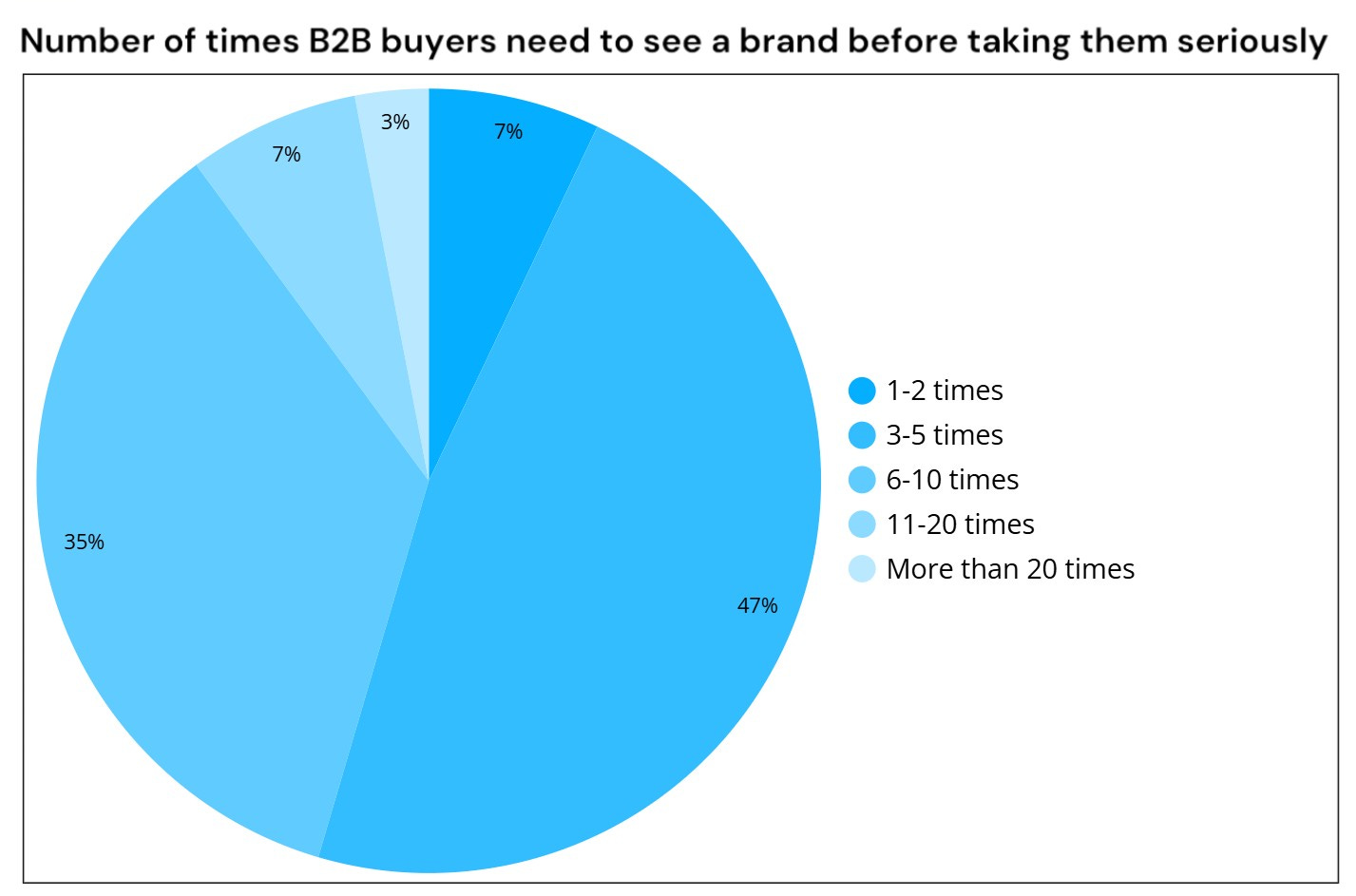 Trust isnāt built overnight. Nearly 47% of buyers need 3-5 interactions before engaging seriously, while 35% require 6-10. This journey might include email campaigns, social posts, and demosāshowcasing the importance of consistency across channels.