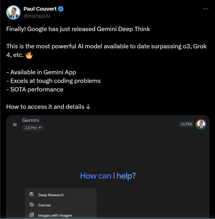Google has just released its most advanced AI yet, Gemini Deep Think, and it’s setting a new standard in reasoning and performance. Positioned beyond O3 and Grok 4, Deep Think is built for power users tackling the toughest AI challenges.