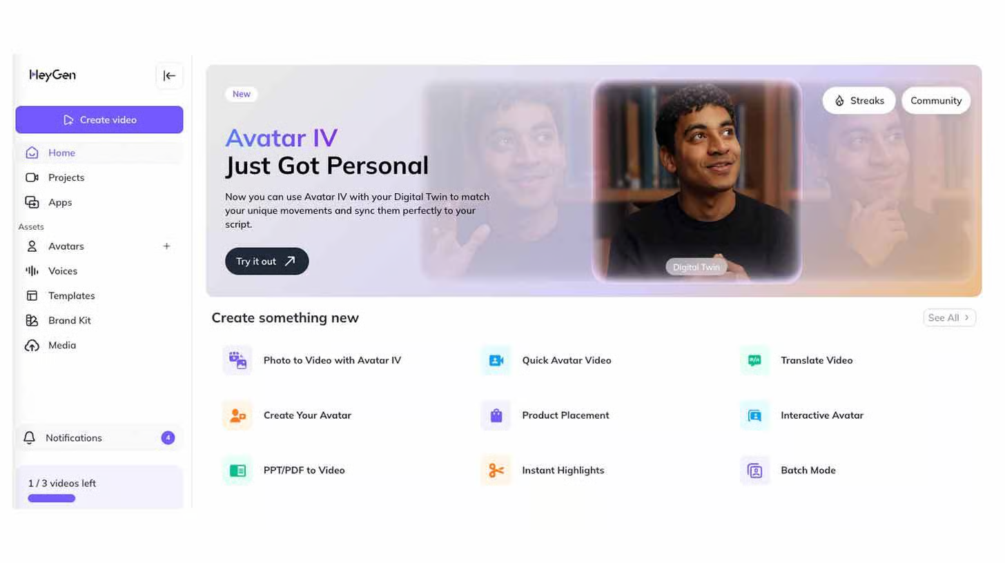 Go to Heygen and click on the “My Avatars” tab and either choose an existing avatar or create a new one. Modern versions allow multiple poses and more realistic expressions, giving you flexibility across campaigns.