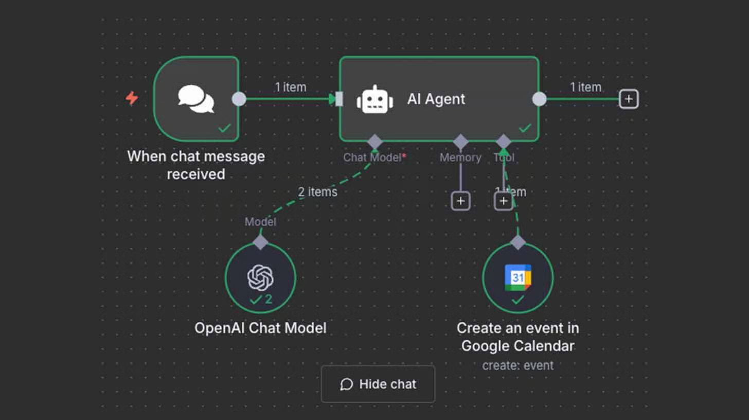 Looking to automate your scheduling with natural language commands? With n8n, you can build a custom AI calendar agent that creates events directly in your Google Calendar — no manual forms or date pickers required. Whether you want to book meetings, dinners, or reminders, this workflow lets you do it all by simply typing a message.